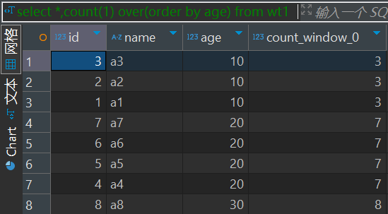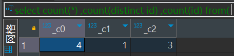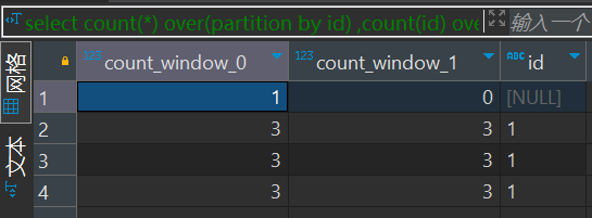 因为在开发sql的过程中经常使用开窗函数,所以试了一下,count(id)确实不会统计null