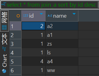 from(select '1' id