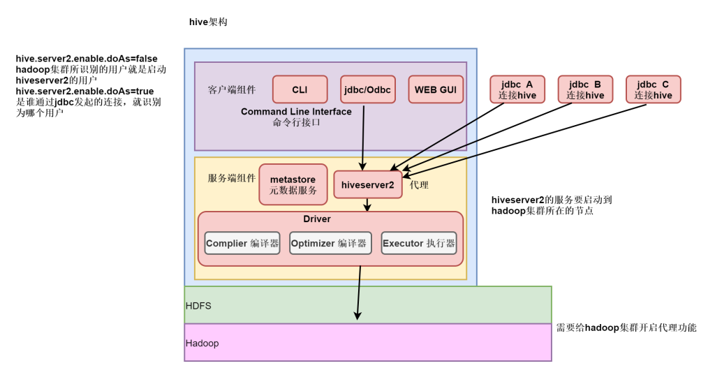 JDBC/ODBC:Hive架构的JDBC和ODBC接口是建立在HiveServer2客户端之上。