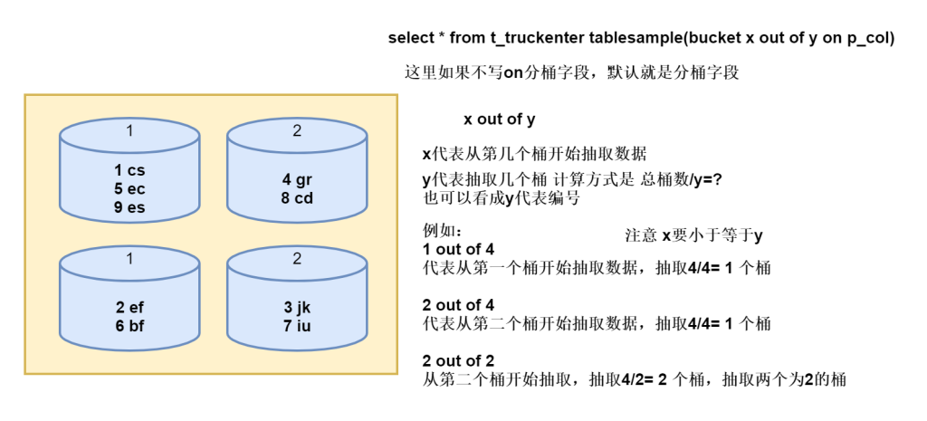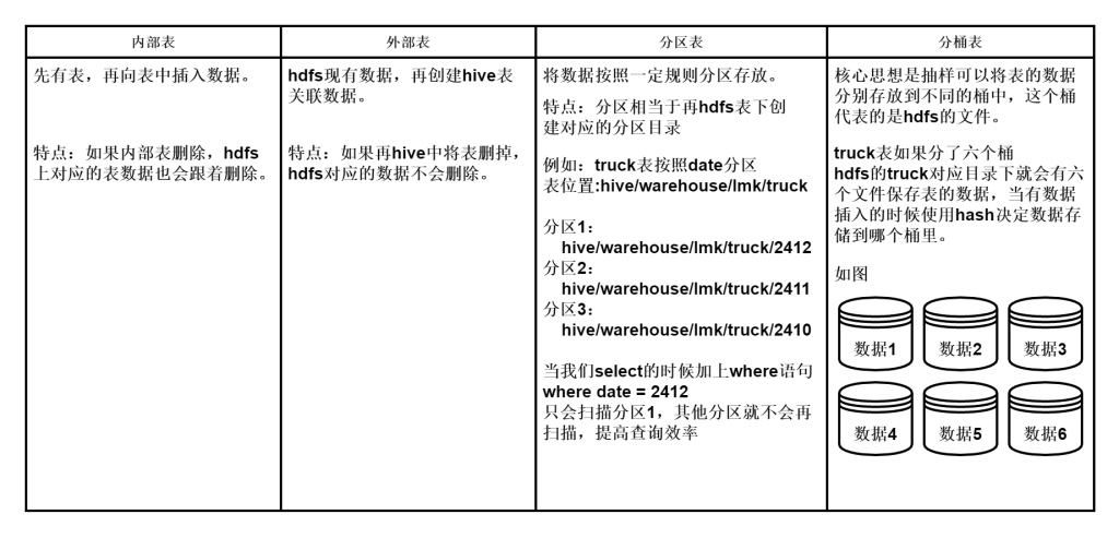 CREATE TABLE(……) CLUSTERED BY (col_1) SORTED BY (col_1) INTO buckets_Nums BUCKETS
