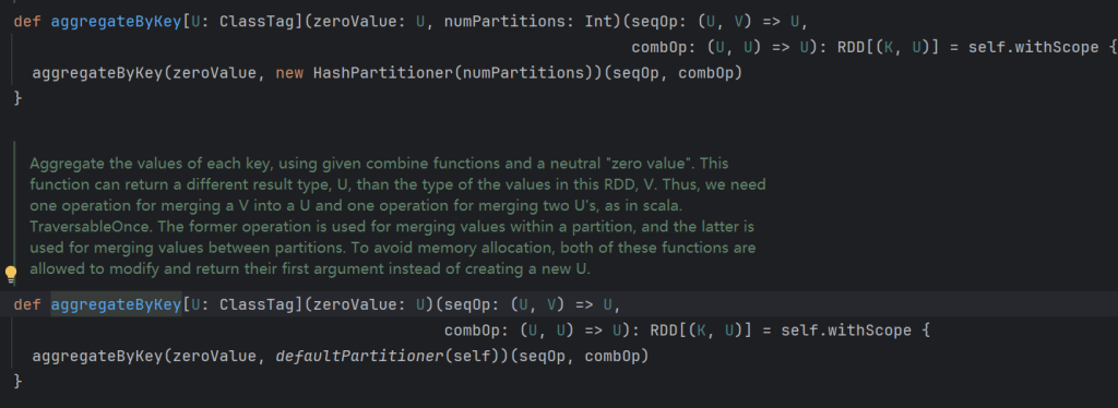 和reduce类似,但可以返回类型不同的结果,后面先是分区合并公式,后是整体合并公式。
