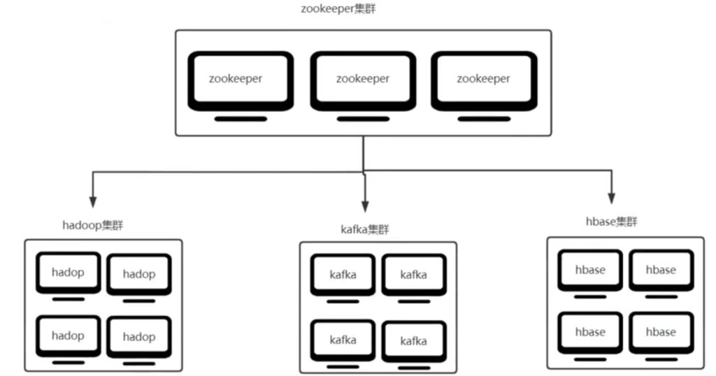 - 统一命名:如果我们启动hadoop集群,那么我们会在Zookeeper集群创建一个hadoop节点。如果启动kafka集群,那么就会创建一个kafka集群,集群就会有一个统一的名称。