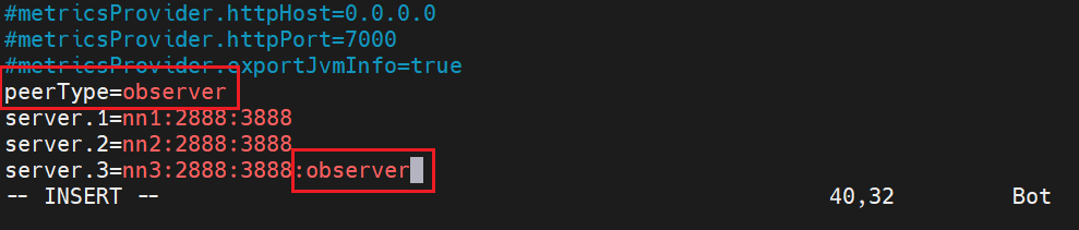 找到zookeeper目录中conf下的zoo.cfg添加以下内容就可以了,只改observer对应的服务器就可以。