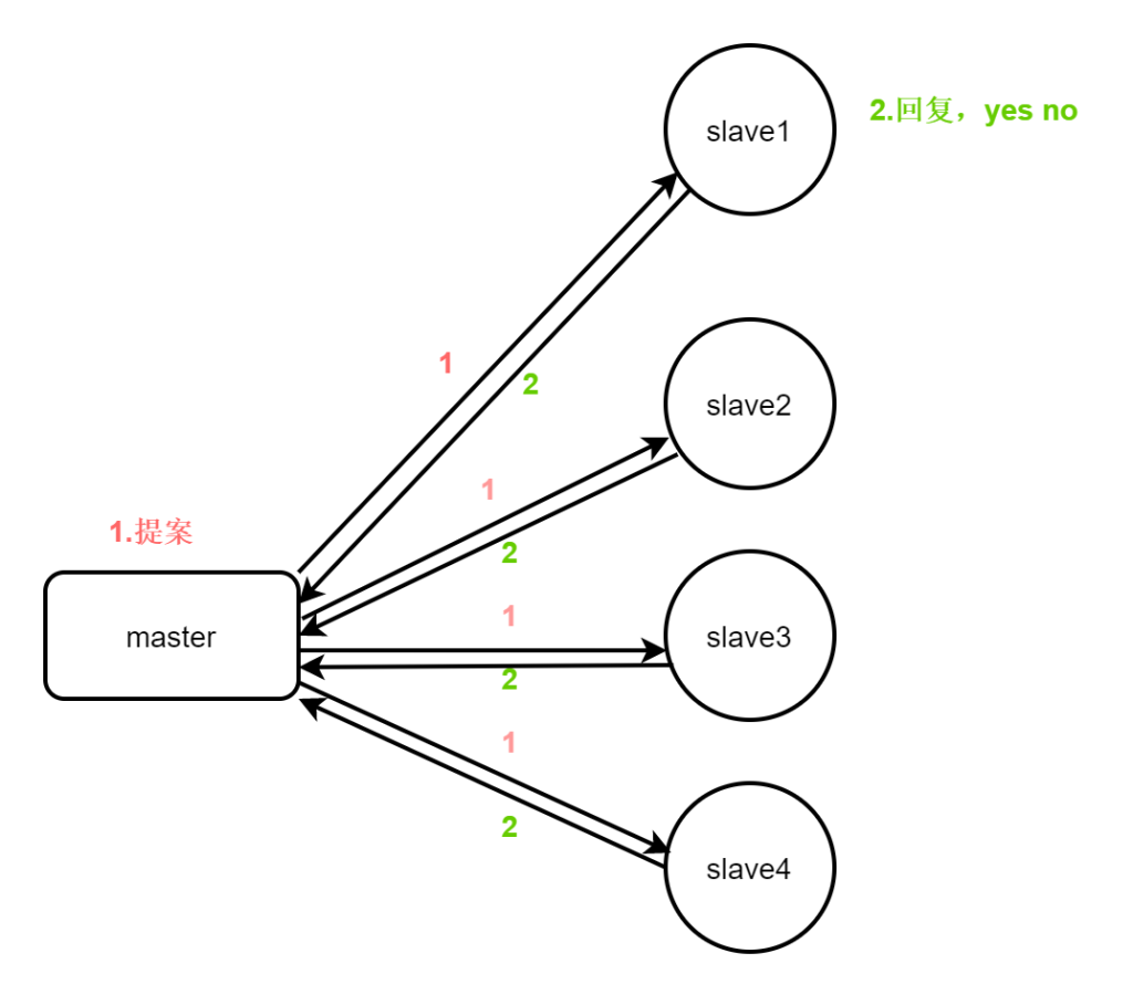 - 3个节点的集群,2个从服务器都挂掉,主服务器也无法运行。因为可运行的机器没有超过集群总数量的半数。